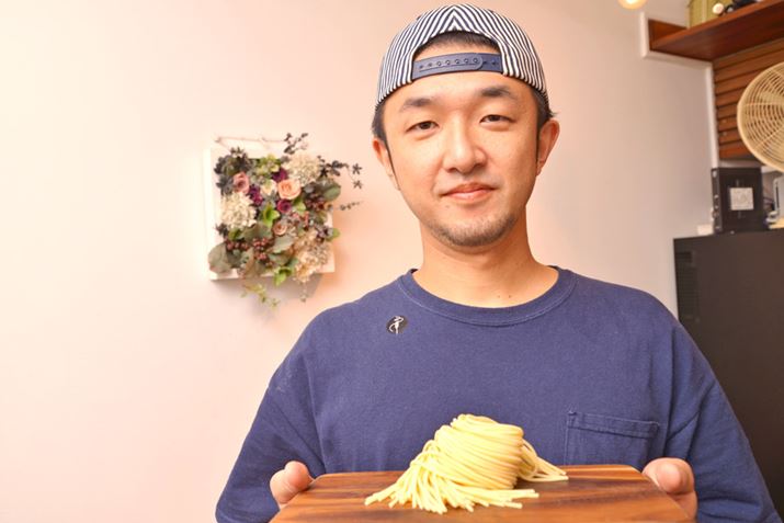 酒井康成さん。祐天寺、渋谷、中目黒などで展開されているパスタメインのイタリアンバル「KURA」で修業後独立。2016年5月3日に「パスタ アルバ」をオープンしました。休みの日は、パスタ以外にラーメンやうどんなども食べ歩いて研究を重ねる求道者です