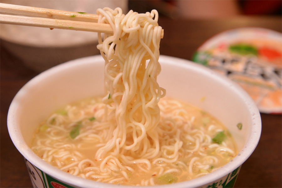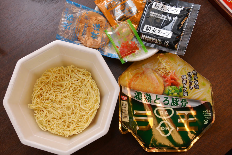 「カップ麺としては安い価格帯だと思うんだけど、ノンフライでこの麺のクオリティは特筆すべきところかな。でも1つ残念なことは、柔らかくなるのが早いところ。1〜2分のうちに食べないと、バリカタ感は完全になくなっちゃうね。本場の博多ラーメンはそのへんも工夫されているから、ここまでのびやすい麺はそうないと思うよ。その、コシみたいなのがもっとあればよかった。惜しいな〜」(川原さん)