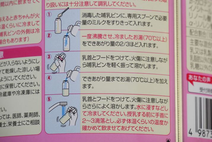 江崎グリコの粉ミルク「アイクレオ バランスミルク」の作り方。手間と時間がかかり、おなかをすかせた赤ちゃんを待たせてしまったり、外出先では作るのが大変