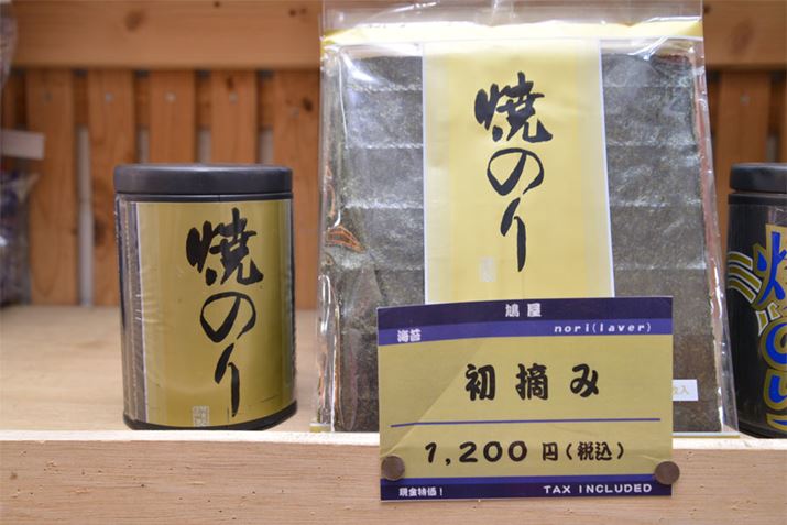 「鳩屋海苔店」自慢の逸品である「初摘み」1200円。くっきりとした味わいと、口の中でほろりととける柔らかさが印象的です