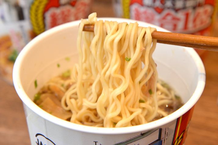 「麺は最初、切刃番手(きりはばんて)を店に近いもので試作したんですけど、カップで食べるとちょっと太く感じたので細めにしました。あとは調理時間ですね。3分のものが多いんですけど、この商品は2分が推奨。2分半でもよかったんですけどね」(榎本店主)