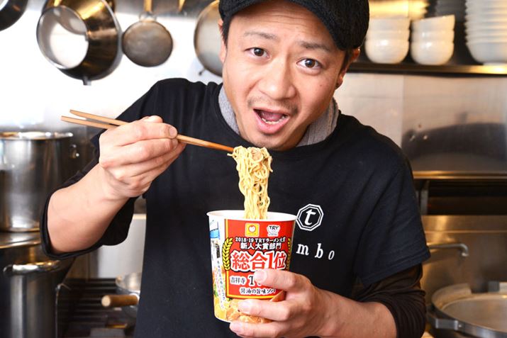 「マルちゃん 吉祥寺 Tombo監修 醤油の旨味ソバ」は、ラーメン業界最高権威と言われる「TRYラーメン大賞」の2018〜2019年度において、「新人大賞部門」の総合1位に輝いたラーメン店「Tombo」とコラボしたカップ麺。つまり、現在ラーメン界で最も勢いに乗っている新店の味を、カップ麺で味わえるということです。