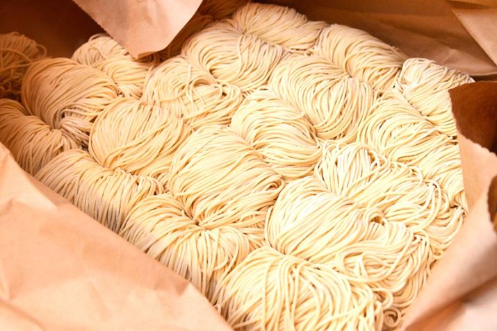 ラーメンの麺は150g(つけ麺は225g)。麺打ちの技術を持っている榎本店主、そのノウハウを生かしたオリジナルの特注麺をオーダーしています