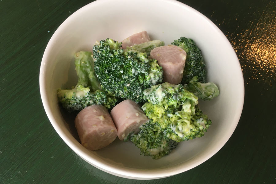 2:ブロッコリーを茹でる、もしくはレンジで温めて火を通します。
