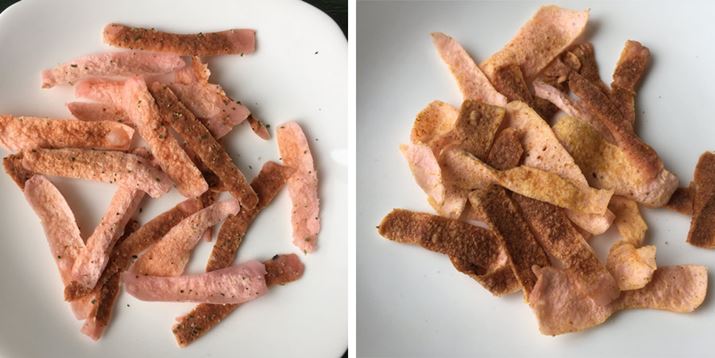 少し前にSNSでも話題になった、その名も「ギョニソジャーキー」。魚肉ソーセージをジャーキーにしてしまうというものです。作り方は本当に簡単で、ピーラーでギョニソをスライスしてレンジで温めるだけ。