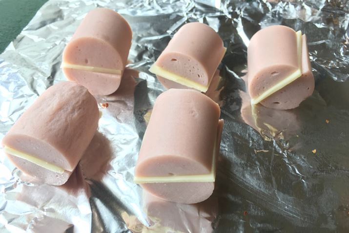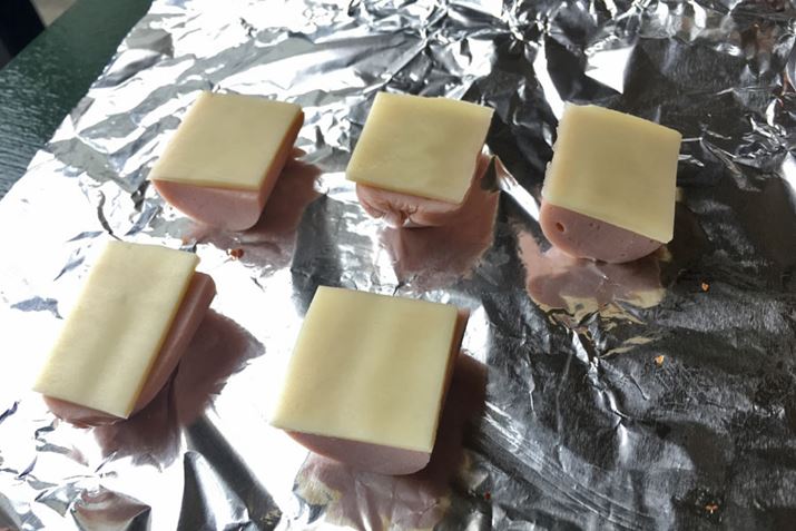 2:その上に、ギョニソサイズにカットしたとろけるチーズをのせます。