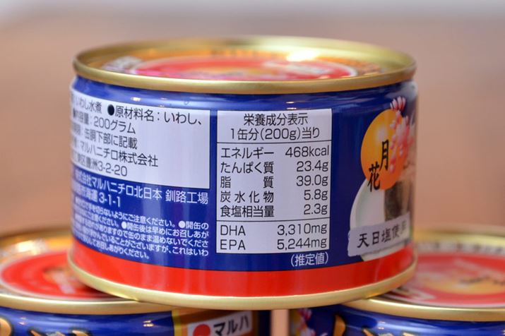 「月花いわし水煮」は、200gで468kcal。必須脂肪酸である「DHA(ドコサヘキサエン酸)」は3310mg、「EPA(エイコサペンタエン酸)」は5244mg