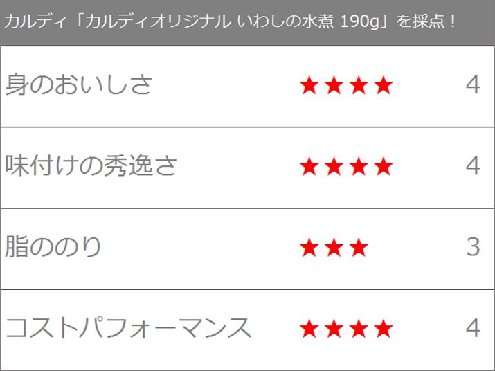 「カルディオリジナル いわしの水煮 190g」は、190gで445kcal