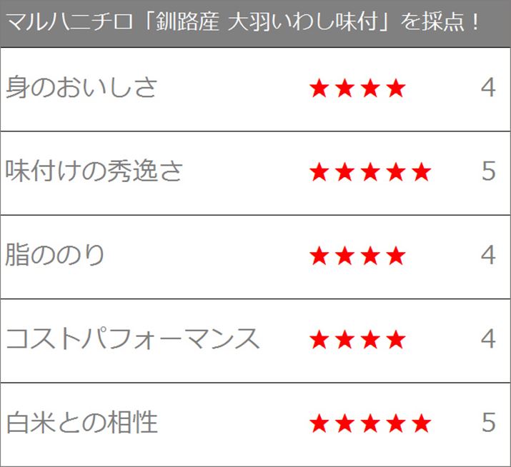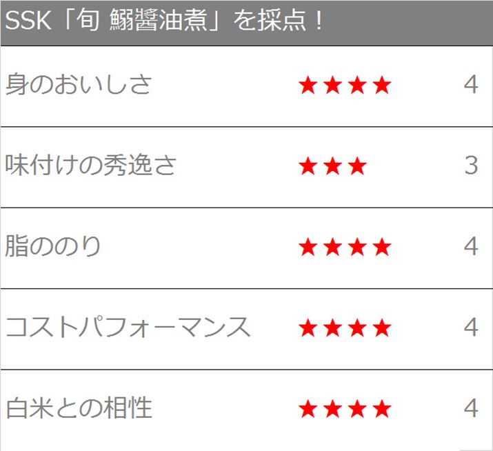 採点項目は、「身のおいしさ」「味付けの秀逸さ」「脂ののり」「コストパフォーマンス」の4つ。なお、「味噌煮部門」と「醬油煮/味付き缶部門」と「蒲焼き部門部門」は、「白米との相性」も評価しました。