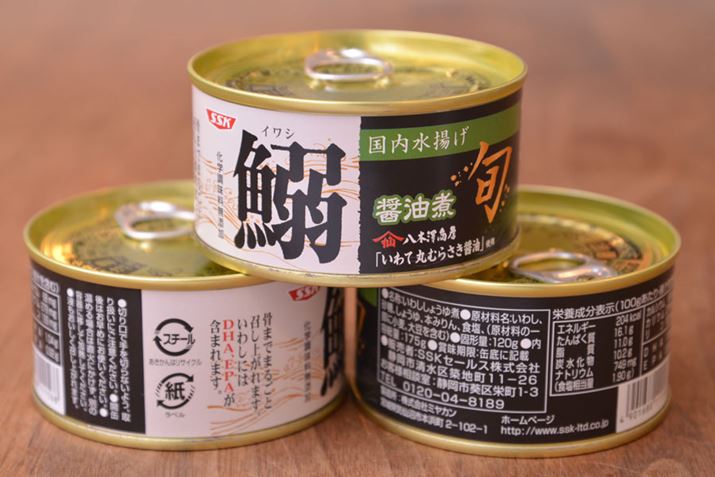 集めているうちに気づいたのが、味付け加工の方向性がサバとやや異なるところ。「サバ缶」は、各メーカーともに「水煮」や「味噌煮」が充実している印象です。いっぽうで「イワシ缶」は、「蒲焼き」がひとつのジャンルを確立しているほか、「オイルサーディン」タイプが販売されているのが特徴的です。