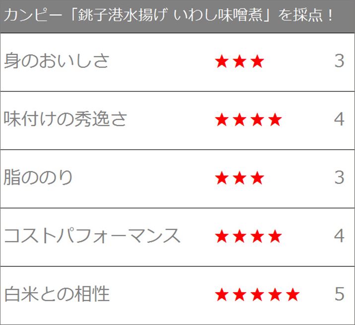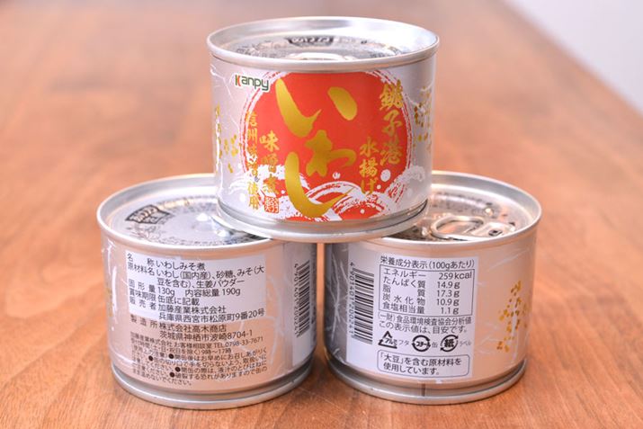 「カンピー」は、食品卸の業界大手である加藤産業のPB。缶詰のほかにジャム、ピーナッツバター、シロップ、乾麺、乾物など、さまざまな食品を手がけています。この缶詰は銚子港で水揚げされたイワシを使い、信州味噌を中心に味付け。隠し味に生姜パウダーを使っているのも特徴です。
