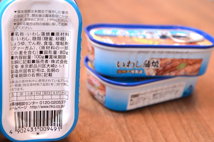 「いわし蒲焼」は、「秘伝いわし蒲焼」と同じく100gですが、同社の規定(個体差などによりバラつきが出るという理由)によりカロリーなどの栄養成分表示がありません