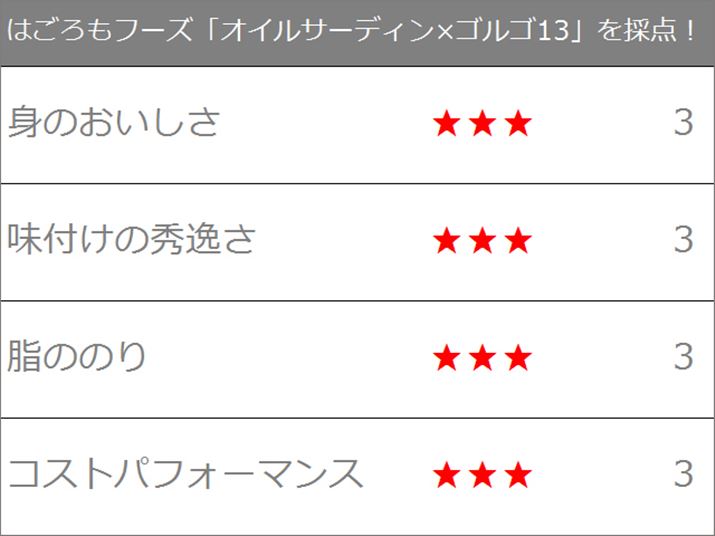 産地も味付けも異なるため、好みが分かれるところですが、筆者的には僅差で「缶つま」が1歩リード。もっと「はごろも&キングオスカー オイルサーディン」の燻香が強ければ違うかもしれませんが、「缶つま」はイワシ本来のたくましい味わいがおいしいと思いました。