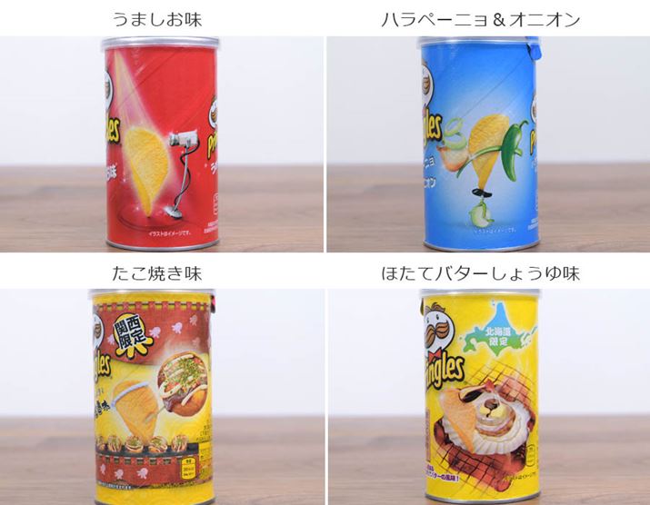 プリングルズのフレーバーと言えば、「うましお味」「サワークリーム&オニオン」の印象が強いが、2019年7月現在、実は現在(掲載時点)その数が9種類も展開されていることをご存知だろうか?「うましお味」「サワークリーム&オニオン」の2大看板に、「ハラペーニョ&オニオン」が定番フレーバーとして加わったほか、地域限定フレーバーとなる「たこ焼き味」「ほたてバターしょうゆ味」も登場。そして現在は、期間限定の新味として「ナチョチーズ」「ガーリックシュリンプ」「明太子味」「クラッシュドブラックペッパー(2019年7月16日から販売予定)」が展開されているのだ。