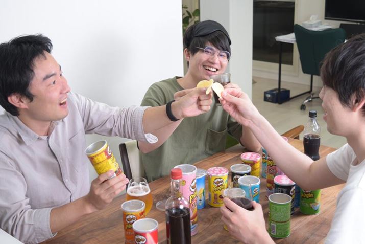 残ったプリングルズをスタッフみんなでワイワイ食べ、今回のレビューが無事終了。ちなみに、「クラッシュドブラックペッパー」や「ガーリックシュリンプ」はビールによく合い、「ナチョチーズ」はワインと合わせてもおいしい
