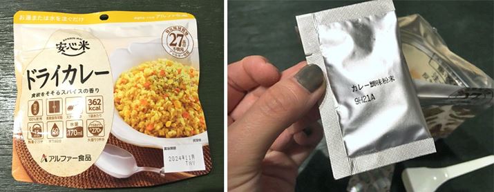 ちなみにアルファ米の「アルファ」とは、お米の大部分を占める「デンプン」の状態を示す言葉。生のデンプンに水と熱を加える(つまりご飯を炊く)と、「アルファ化デンプン」という状態になるそうです。その状態の「アルファ化デンプン」を乾燥させたものなので、「アルファ米」という名前になったようですね。