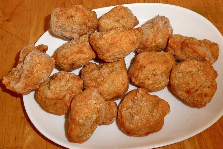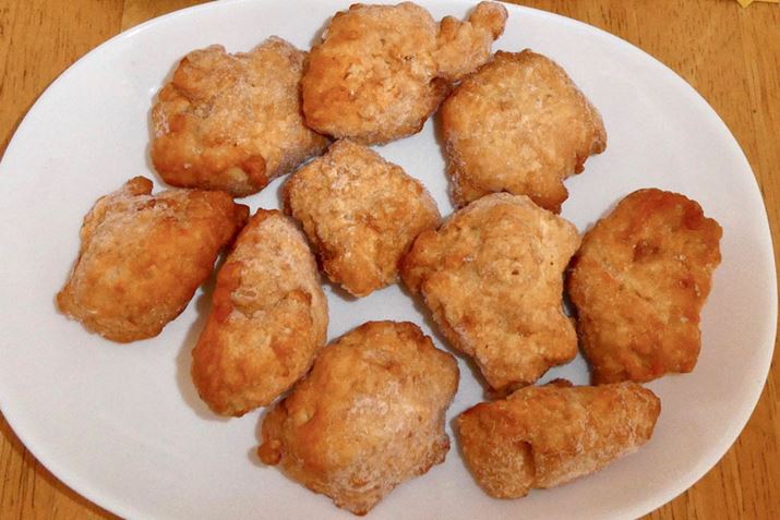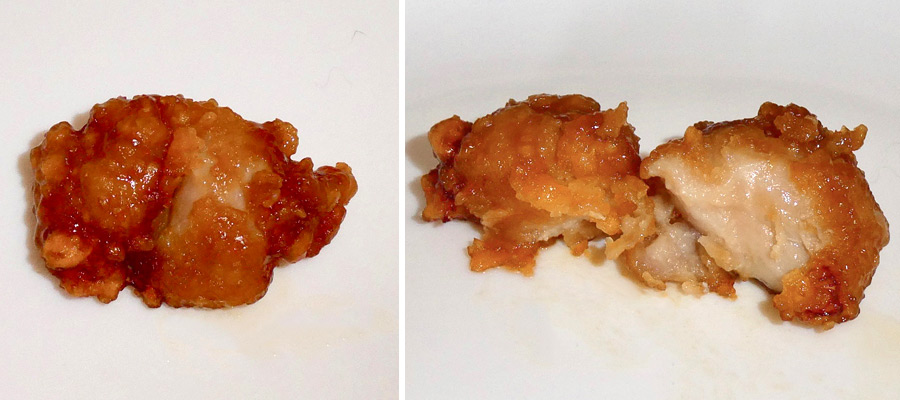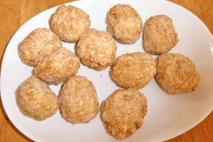 チキンナゲットのような見た目。衣は薄く、サクサクしています