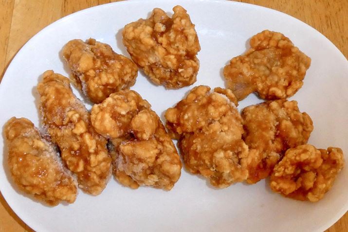 お弁当箱サイズに適したからあげです。パッと見はチキンナゲットに見えるのですが、食べると、これがからあげなんですよね。ちょっとびっくりします。やわらかさはもちろん、噛んだときのジューシーさもナゲットではなくからあげのそれです。香味油で仕上げているおかげで香りもふんわりと漂い、お弁当のごはんと一緒に食べるとこれがまたたまりません。衣もサクサク感があって食感も楽しめます。やさしい味で、スパイシーさがやや足りないと感じる人もいるかもしれませんが、そんなときはコショウやマヨネーズなどを足して食べるとさらにウマさアップです。