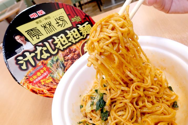 お店の味を堪能した後は、明星食品が発売したカップ麺「神田 雲林坊 汁なし担担麺」(248円)を食べて、その再現度をガチ比べしていきます!