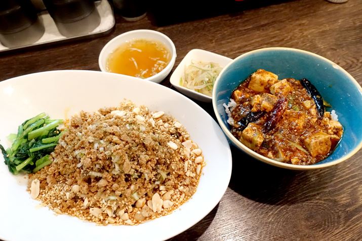 今回は、汁なし担担麺と小麻婆豆腐かけご飯セット(1,250円)を注文。1,250円にして、この大ボリュームは安いかも!