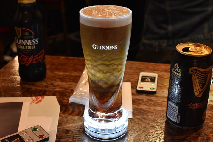 「ドラフトギネス」の特徴を理解したあとは、もういっぽうの「ギネス エクストラスタウト」と飲み比べ。こちらは瓶ということもあって「フローティング・ウィジェット」はしかけられていませんが、やさしい泡はしっかりと味わえます。よりビターなロースト香がありつつ、シャープなのどごしも楽しめます。こっちのほうが好きと言う人も、少なくないでしょう。