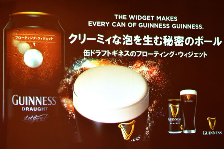 特にユニークなのが缶。それを説明しましょうということで、セミナーはサーブ体験へ。「いつも通りに注いでみてください」と、「ドラフトギネス」の缶と専用グラスが用意されたので、やってみました。