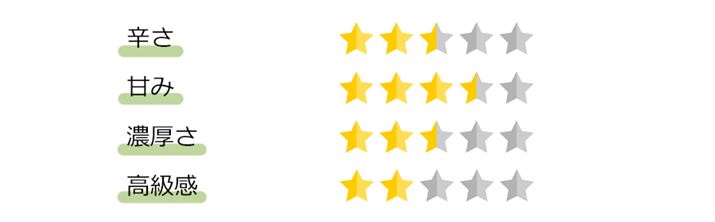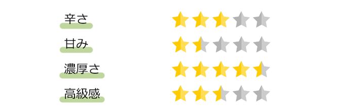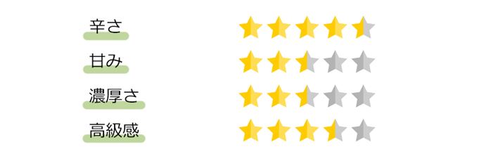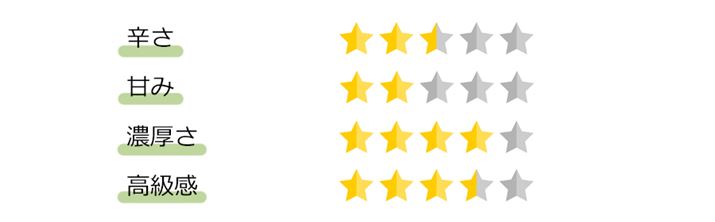 辛さと甘さは比較的控えめ。その分うまみを感じさせる仕上がり
