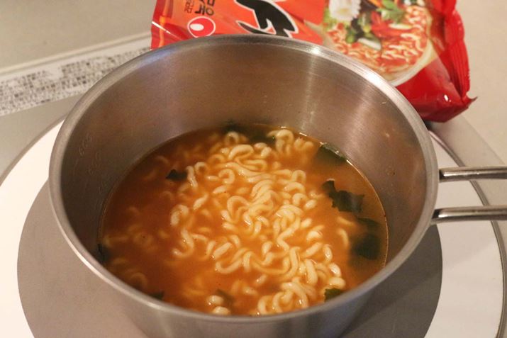 そして、とくに印象的だったのが麺の「圧力」。日本のインスタント麺よりももっちりと弾力があるうえにボリュームがあり、ものすごくお腹にたまります。決して小食ではない筆者ですが、1.5袋分が胃に収まり切らず、しばらくは胃と食道の間で麺が渋滞しているような感覚でした。誰かと分け合って食べること前提のメニューですね。