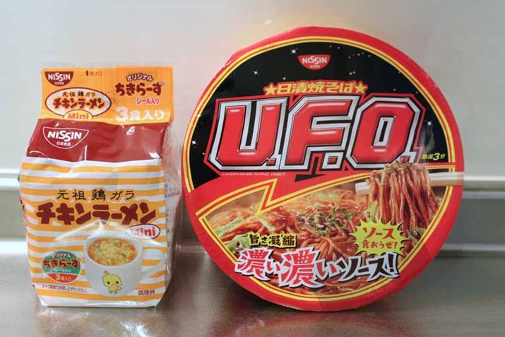 焼きそばは「ペヤングソース焼きそば」と迷ったのですが、同じメーカー(日清食品)の製品のほうがマッチしやすいのではということで、「焼そばU.F.O.」をチョイス