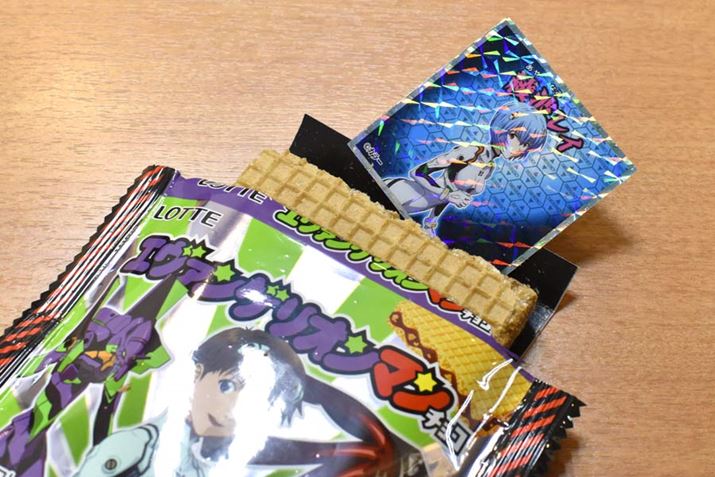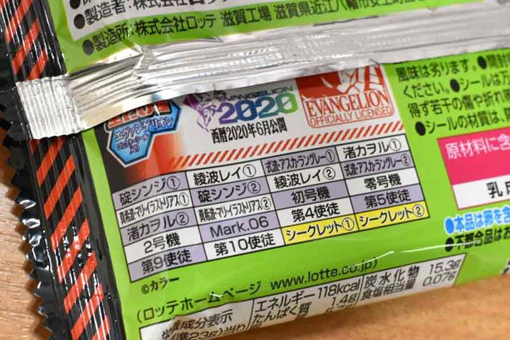 そう、イラストが“ビックリマン”風にデフォルメされていないのだ。「ビックリマンチョコ」とのコラボと言えば、コラボしたコンテンツのキャラクターを「ビックリマン」のイラストレーターが「ビックリマン」風にデフォルメして描き下ろしたイラストをシールに採用するのがスタンダード。それが欲しくてファンはこぞって買うのだと思うが、外袋から見る限り、それは期待しないほうがよさそうだ。でも、もしかしたら両キャラクターがフュージョンした、たとえば「スーパー碇ゼウス」とか、「ヘッドシンジロココ」とかがシークレットで用意されているかもしれない。