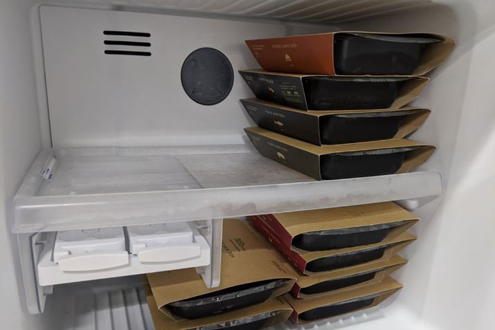 ひとまず届いたらこのように冷凍庫に入れて保管する。あまり冷凍庫に余裕がない場合は、少量ずつ注文したほうがいいかも