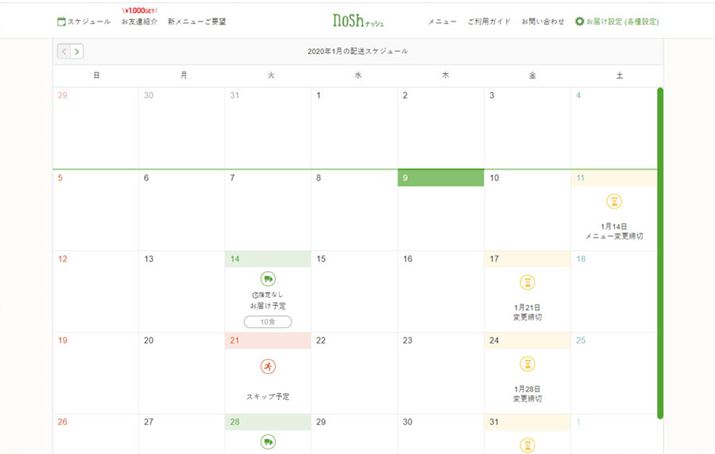 「nosh」では、配送日が1週間に1回(あるいは2週間に1回)、基本的に火曜日にセットされる。前週の金曜日までにメニューを確定すれば、火曜日には届くというシステムだ
