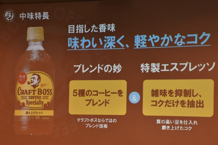 メーカーいわく、「クラフトボス スペシャルティ微糖」は、既存の「クラフトボス ブラック」と「クラフトボス ラテ」に次ぐ、第3の柱として育成していくとか