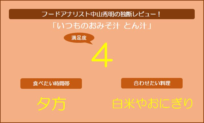 ラストの3商品は、「いつものおみそ汁」の中でもプレミアムなタイプ。まずはこちらから。麦味噌と野菜のうまみが広がる合わせダシをベースにした豚汁です。