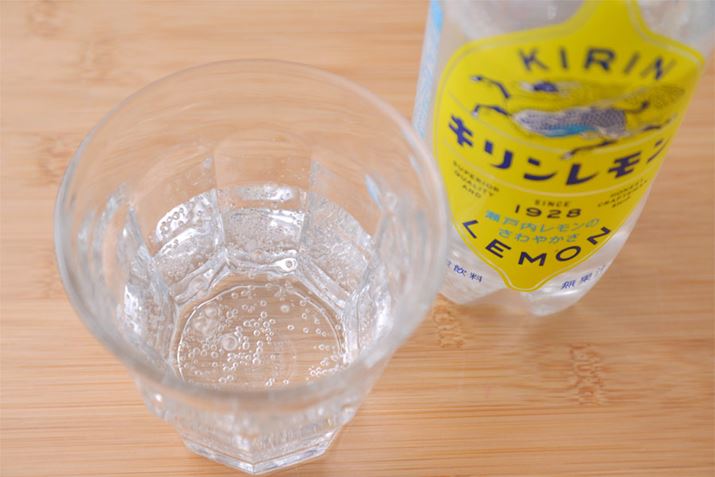 クリアな色みで炭酸の気泡もフレッシュ。ちなみに、レモンは果汁ではなく果実から抽出したエキスを使用しているため、無果汁という表記になるそうです