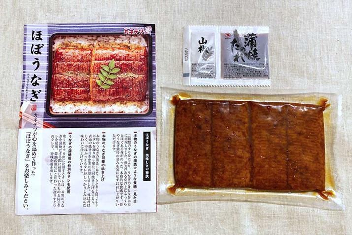 まずは、「ほぼカニ」や「ほぼホタテ」など、魚肉を使った代用食品の「ほぼ〇〇シリーズ」で人気の「カネテツ」から。この「ほぼうなぎ」は、販売開始後すぐに売り切れになってしまう人気商品です。