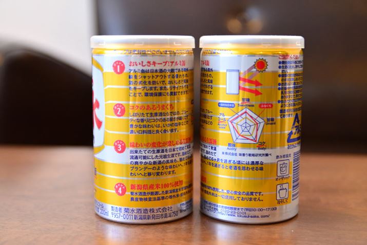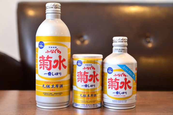 「ふなぐち」の正式名称は、「生原酒 ふなぐち菊水一番しぼり」で、蔵元の菊水酒造は約1200ある全国の蔵元の中で、全国清酒出荷量が14位という大手です。強みは、生酒と生貯蔵酒出荷量で、こちらはなんと日本一だとか! その基盤となっているのが何を隠そう、この「ふなぐち」。パッケージに「元祖 生原酒」とあるように、1972年に日本初の缶入り生原酒として登場したという出自を持つお酒なのです。