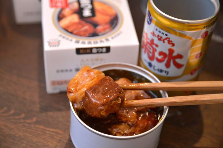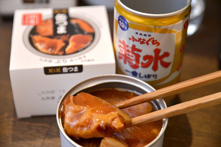 ぶりの持ち味である、濃厚な脂が醬油ダレとマッチしていて、ほかの魚缶詰とは一線を画すおいしさ。とろみもあって完成度が高いです。ガツンとした「ふなぐち」との組み合わせは、まさに“水魚の交わり”と言える相性のよさ!