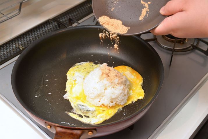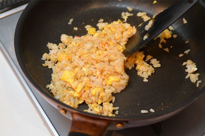 比較のため、なるべく調理方法はシンプルに。ご飯と卵をサラダ油で炒めて、チャーハンの素と混ぜ合わせるだけ
