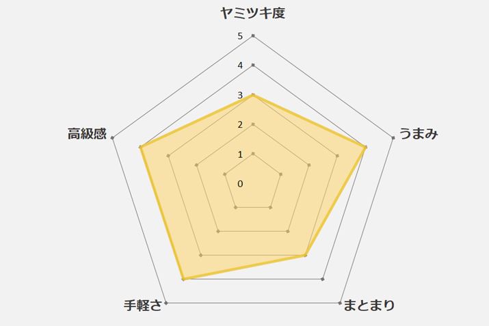 また、チャーハンの素そのものの味を際立たせるため、ご飯以外にはサラダ油と卵のみを使用します。テイスティングのコメントとともに、「うまみ」「ヤミツキ度」「高級感」「まとまり(一体感・バランス)」、「手軽さ(調理の簡単さ)」の5項目で採点していきます。