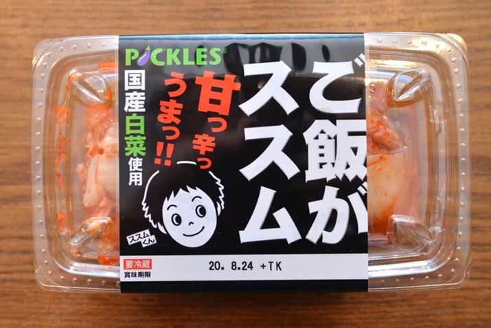 「ご飯がススムキムチ」を思わせる少年っぽいキャラクターがパッケージに描かれていますが、まったくの別会社です。ただ、味の方向性は辛さ控えめ&甘さ強めで近しいものを感じます。こちらのほうが甘みは強過ぎず、より万人受けしそうです。