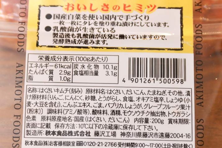 こちらも、先述の「牛角 韓国直送キムチ」と同様に賞味期限が割と長め。フタ付きボックスは、賞味期限が長くなる傾向にあるようです。