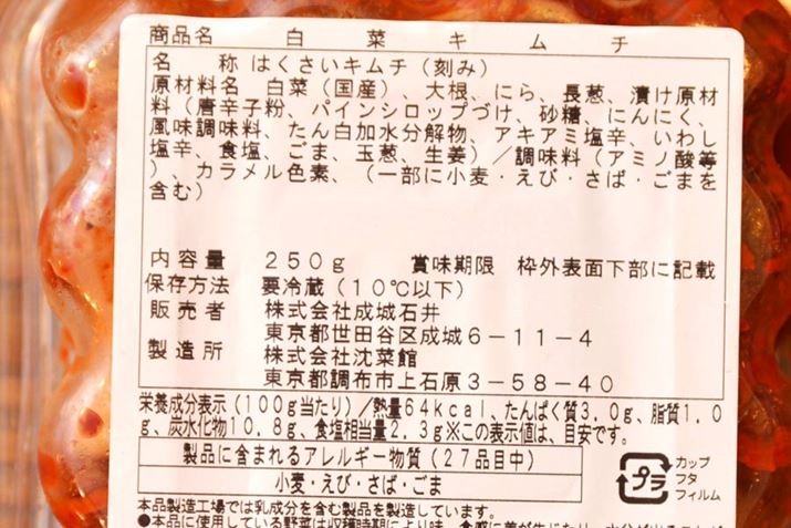 チーズケーキ、フォー、いちごバター、モーモーチャーチャーなど、数々の名作をラインアップする成城石井。同社のキムチもファンが多く、本稿としては外せない1品です。韓国随一の産地・英陽(ヨンヤン)の唐辛子を使用したヤンニャムで、国産白菜を漬けています。