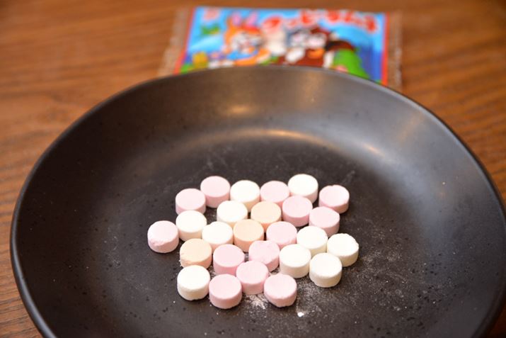 食べてみると、こちらも個性的で、上記で紹介したラムネにはないホワホワ感があります。記憶が正しければ「UHA味覚糖 × イコマ製菓本舗 レインボーラムネ ミニ」の食感も、同様にソフトなタッチだったような。ほどよいやわらかさがあって、口の中でふんわりと溶けていく不思議なテクスチャーです。