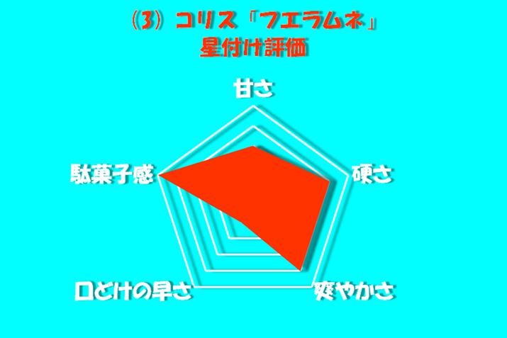 今回はラムネですが、コリスには「フエガム」もラインアップされています
