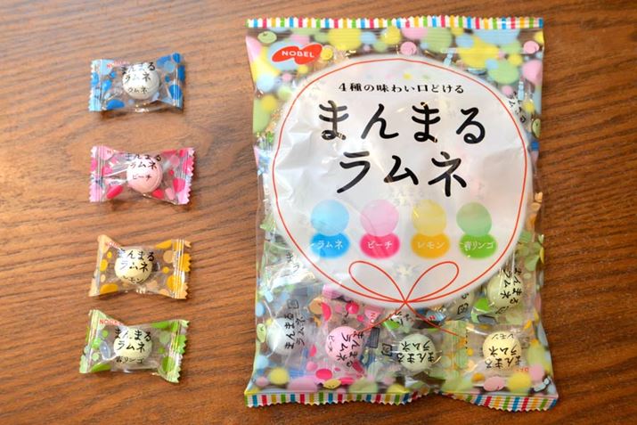 「VC-3000のど飴」や「サワーズグミ」など、数々の名作を手がけるノーベル製菓のラムネと言えば、この「まんまるラムネ」。昔ながらのラムネをほどよく現代的に仕上げており、個包装や4種アソートなどの特徴も光ります。