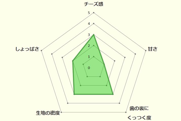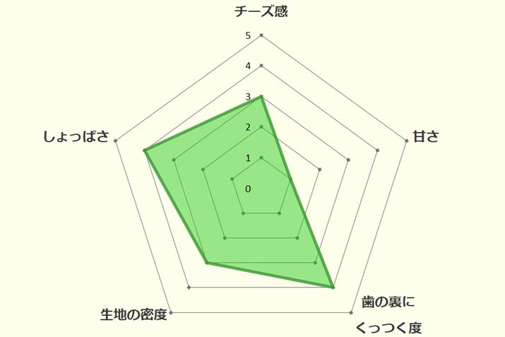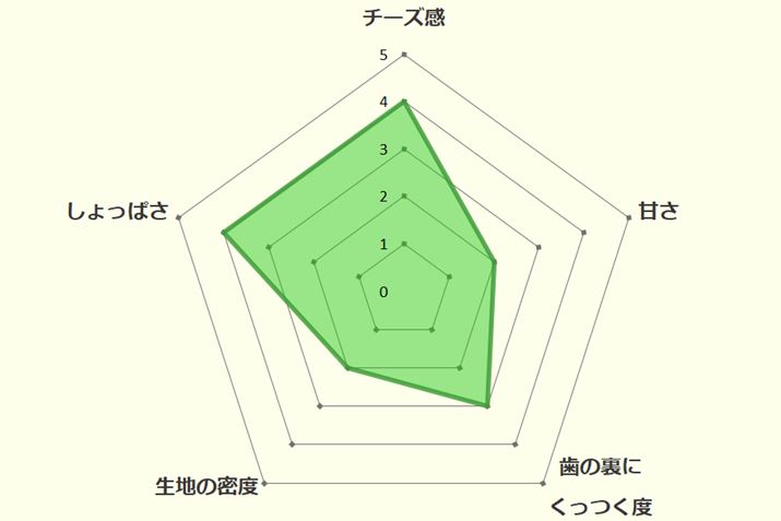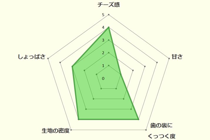 チーズ感やしょっぱさなど、各項目を採点したのでこちらも比較の参考に。