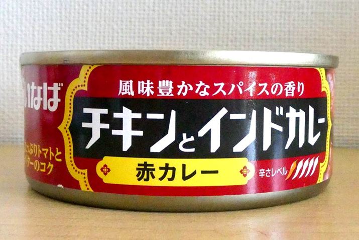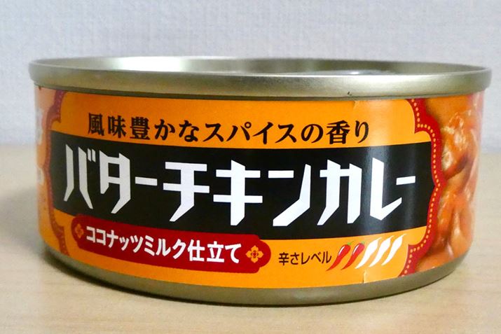 こちらも「インドカレー」ですが、製造はタイ。赤いので辛いかと思いきや、辛さレベルは5段階では1で、食べてみると辛さはほとんど感じません。色はトマトの赤ですね。トマトの酸味とバターのコクが調和していて、濃厚でクリーミーな味わい。子供でも大丈夫そうな、マイルドなカレー缶です。
