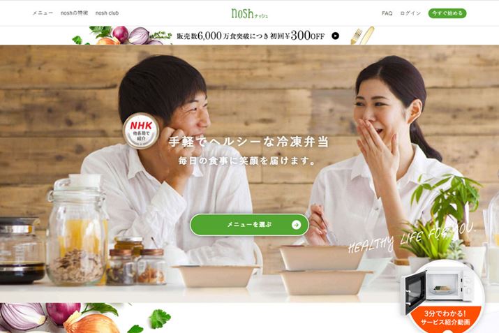 というわけで、「nosh」の実食レビューを開始することになった。まずは「nosh」のWebサイトに行き、弁当の注文から初めてみよう。