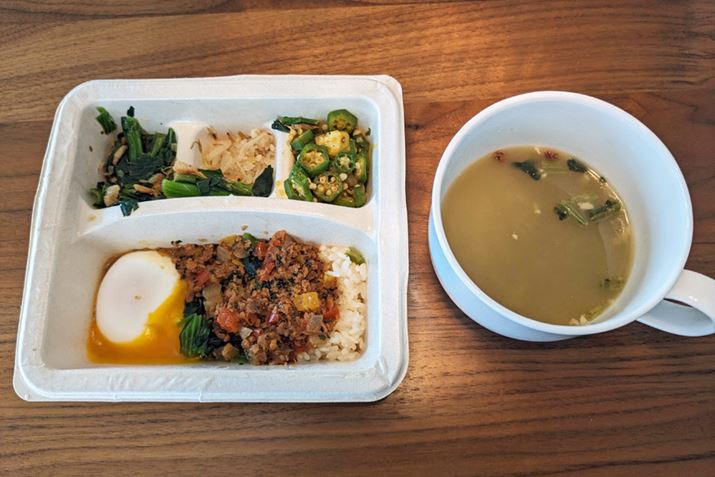 2日目にチョイスしたのは、ガパオライス。ご存じ、タイ料理で人気のメニューである。しかも何と脅威のローカロリー、219kcal! ガパオライスってことはご飯も入っているのにこの低カロリーはすごい。ロカボ生活って、食事の美味しさについては期待しちゃいけないって思っている人が多いと思うけれど、これだけの低カロリーでガパオライスが食べられるってだけでもうれしいと思う。